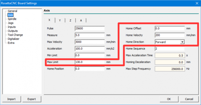 归位程序允许机械位置与 RosettaCNC 主板A 协调的机器同步。该过程包括根据罗塞塔 RosettaCNC 软件中的设置向前或向后移动