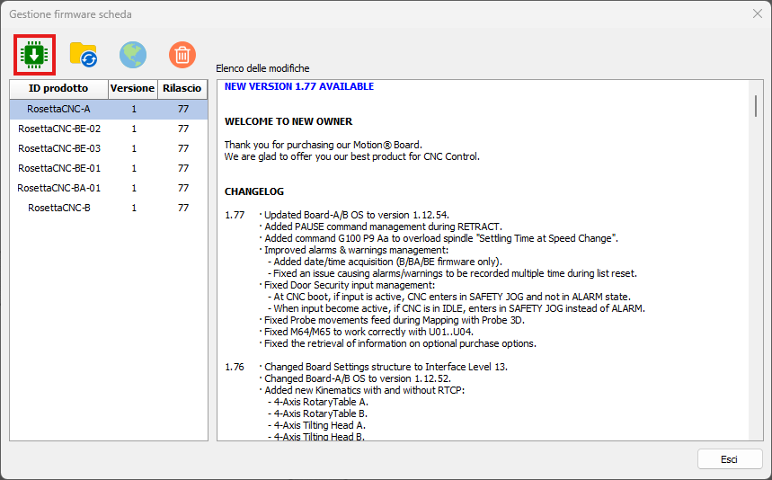 In this case, a Firmware Update of the RosettaCNC Board is required.