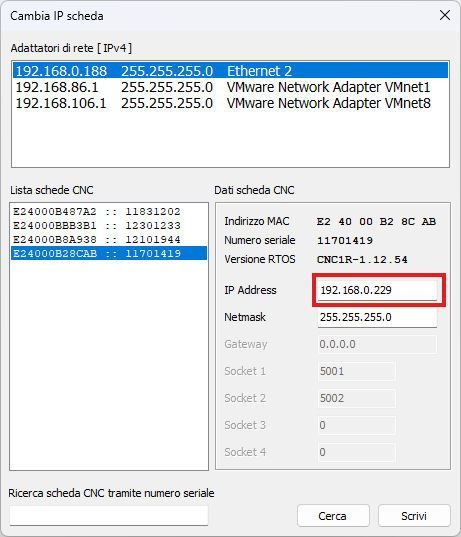 Now that you have found the IP of the RosettaCNC board, you can proceed with the first connection.