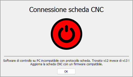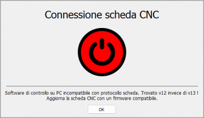 During the connection, the message PC control software incompatible with board protocol