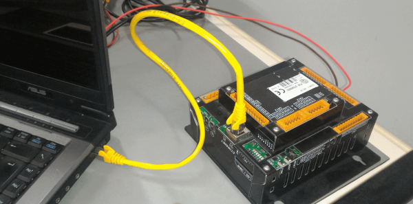 - Connect an Ethernet cable between the RosettaCNC board and an Ethernet port on your network (modem, switch, etc.).